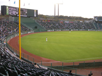 野外の球場で天然芝、ブルペンが見えるなど本来野球場はこうでなければいけない。6回ごろ行われる