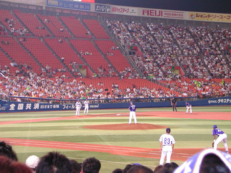 客がいたのには驚いた。おおらかな球場だ。試合前に少年野球の選手たちにコーチがノックしていたことには感心