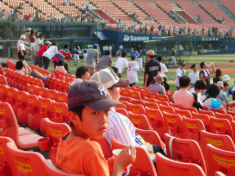 客がいたのには驚いた。おおらかな球場だ。試合前に少年野球の選手たちにコーチがノックしていたことには感心